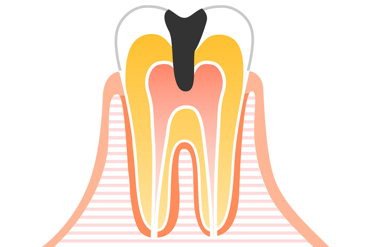 むし歯が神経に達すると、何もしなくても強い痛みが出たり、歯ぐきが腫れたりすることがあります。放置すると歯を失う原因にもなりますので、痛み止めでやり過ごすのではなく、当院へご相談ください。