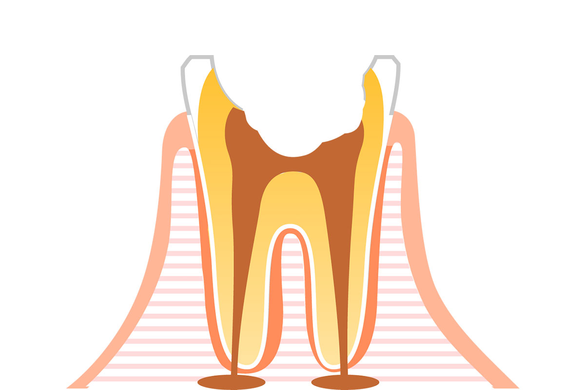 むし歯が進行して歯の上の方や神経の部分がなくなり、歯根だけが残る状態になると、痛みを感じなくなります。